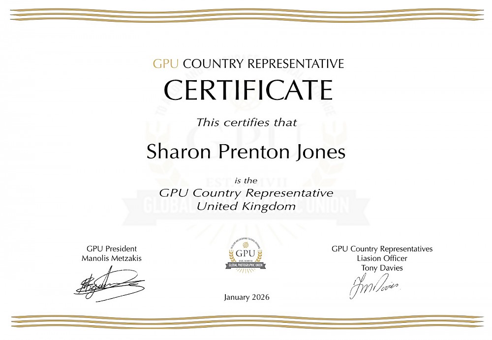 In January 2026 Sharon was appointed as the United Kingdom representative for the Global Photographic Union. She is slowly getting used to this role and, in particular, is pushing forward in her role as encouraging people to try for different photographic titles.