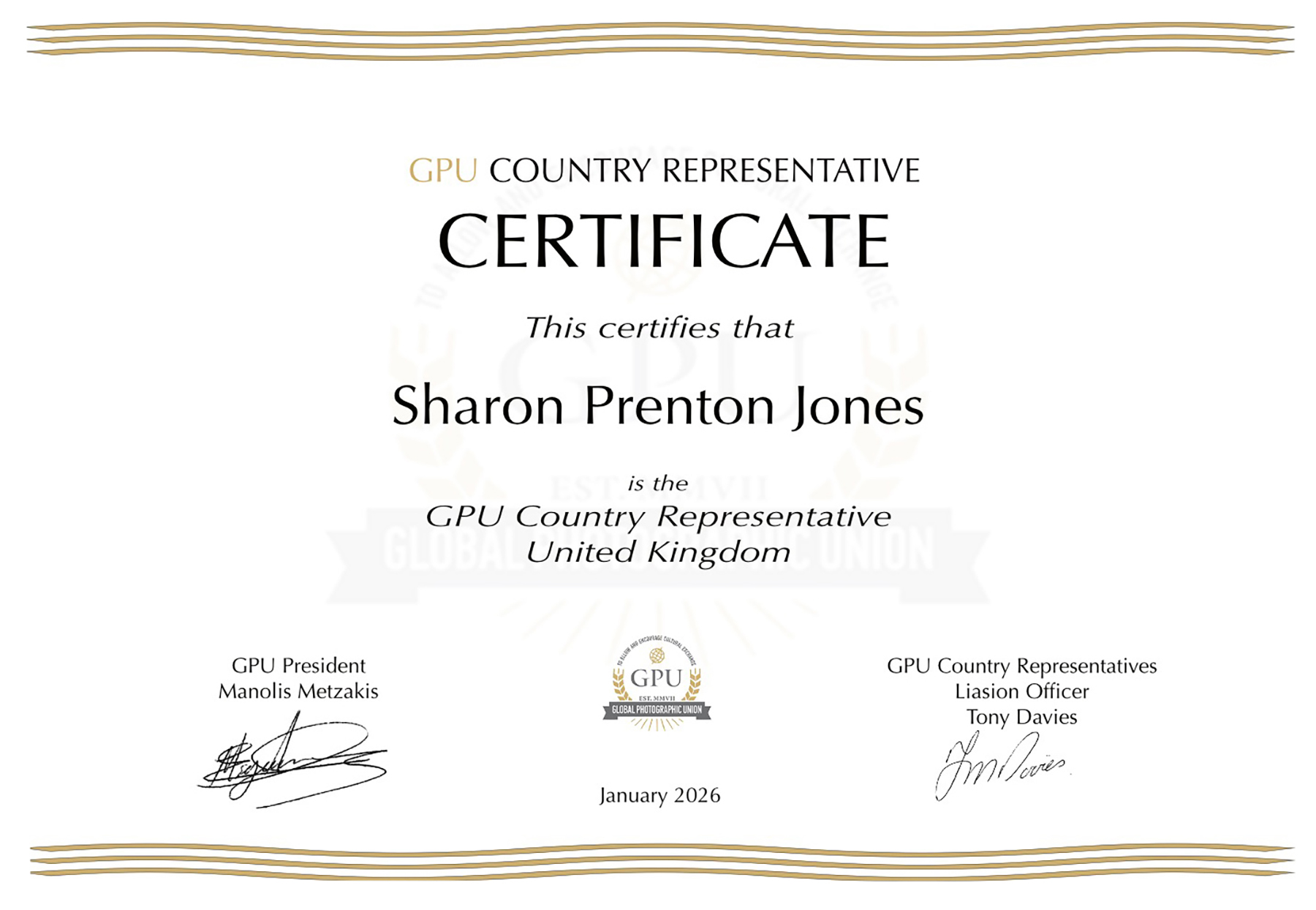 Sharon is appointed UK representative for the Global Photographic Union